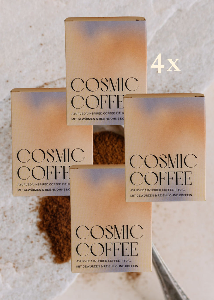 Cosmic Coffee ist die wohltuende Alternative zum sonst üblichen Koffeinkick & Kaffeehigh. Unsere Mischung ist koffeinfrei und belebt sanft mit der Kraft der ayurvedischen Gewürze. Getrockneter Ingwer, schwarzer Pfeffer, Zimt, Kardamom und weitere ausgewählte Gewürze sorgen für einen chai-artigen Geschmack und dass Du auch ohne Koffein wach und munter wirst. Neben Gewürzen ist noch das Adaptogen Reishi enthalten. Reishi blickt auf eine jahrtausendealte Tradition und Verwendung als wertvoller Vitalpilz - mehr dazu hier. Er verleiht der Mischung einen kaffeeartigen, herben Geschmack.